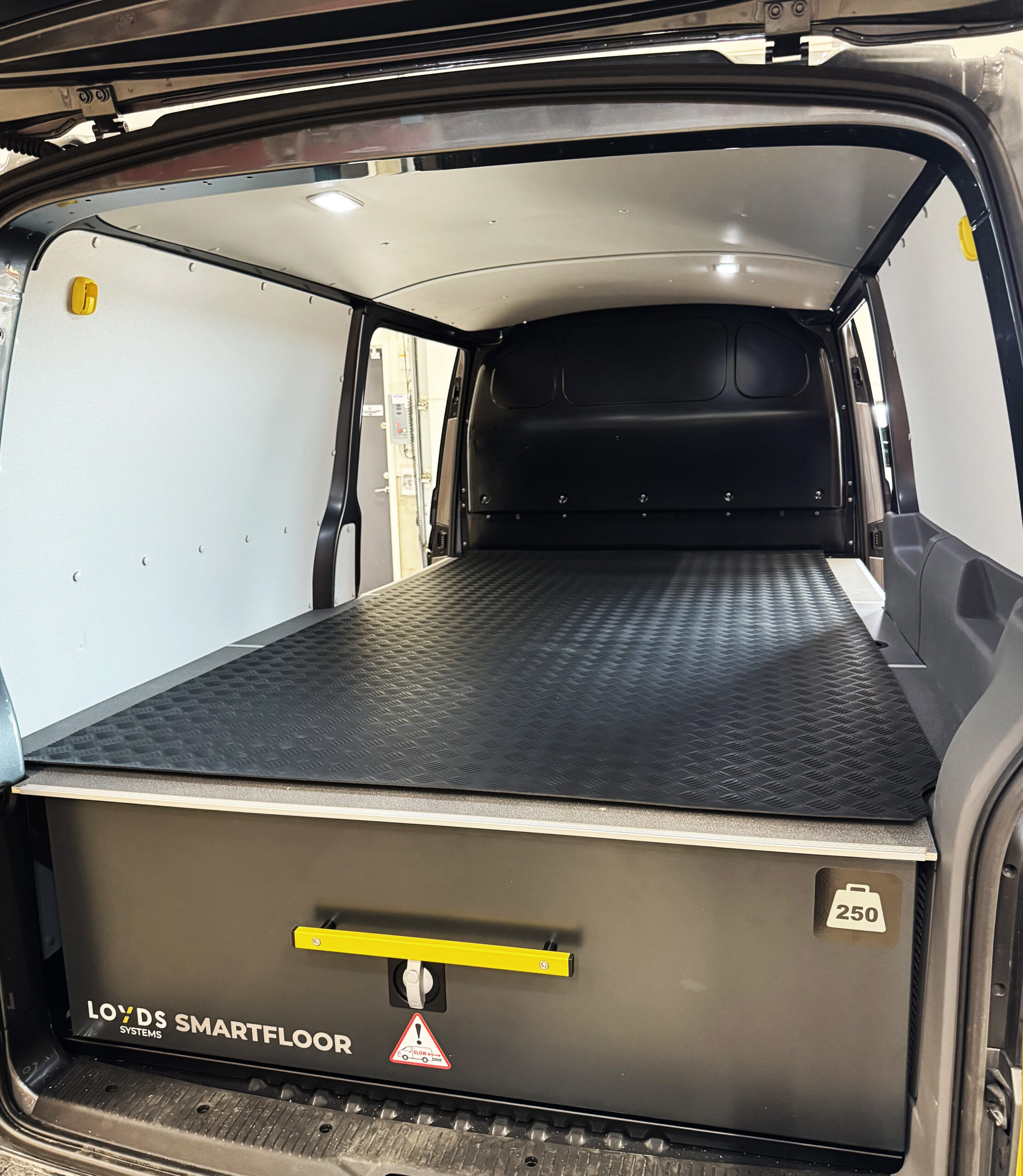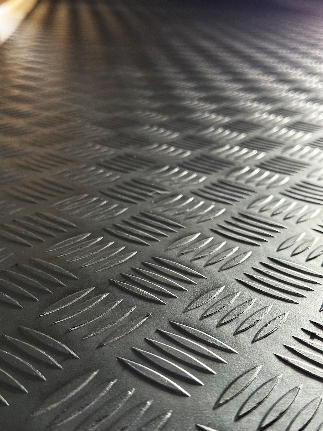 En gummimatte gjør at større varer og verktøy ikke sklir rundt på gulvet. Matten beskytter også selve gulvet. Kuttes selv etter ønsket lengde og bredde.